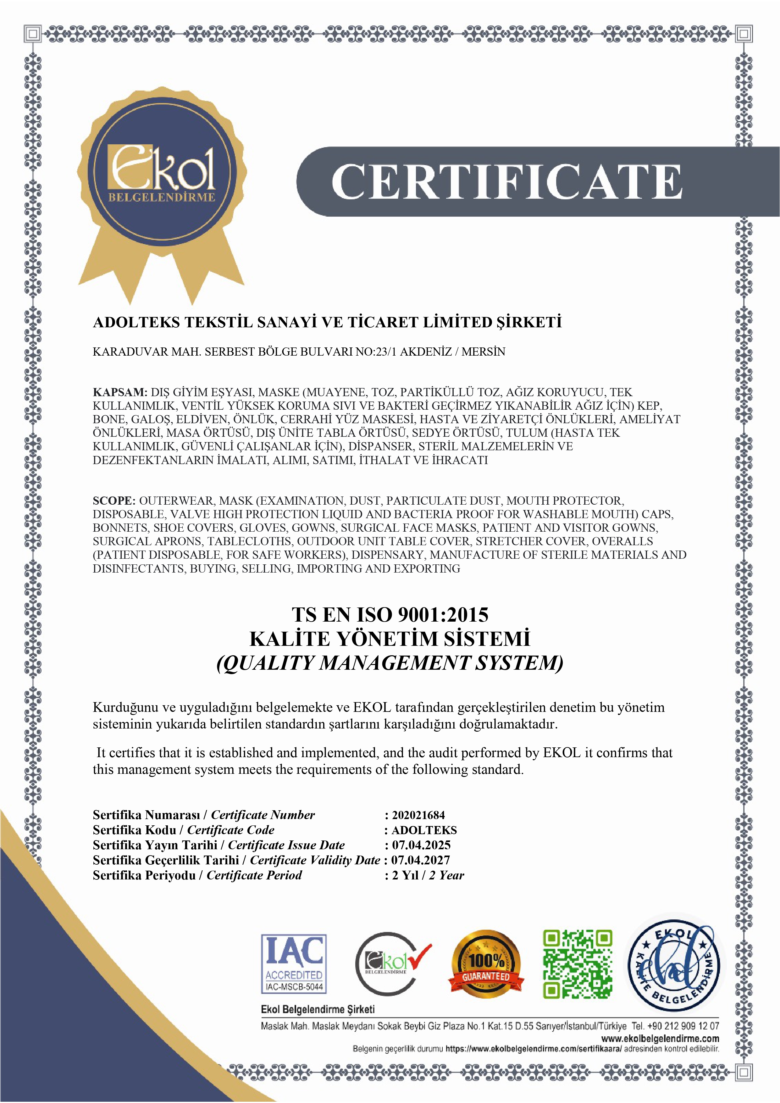 TS EN ISO 9001:2015 KALİTE YÖNETİM SİSTEMİ