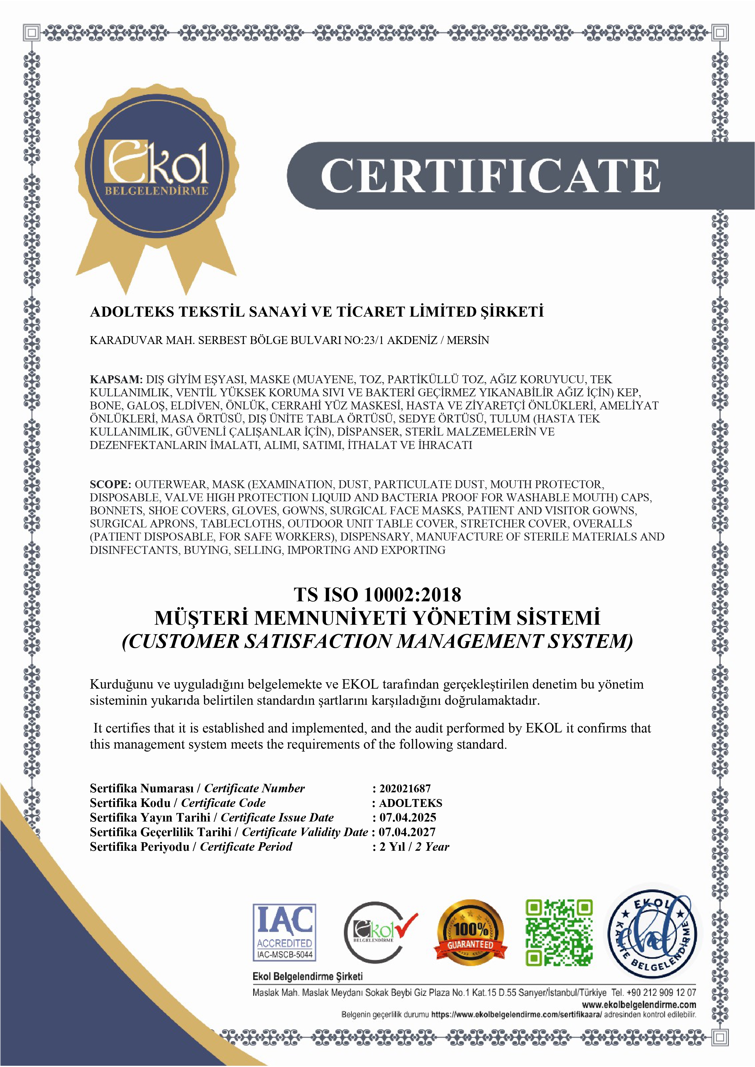 TS ISO 10002:2018 MÜŞTERİ MEMNUNİYETİ YÖNETİM SİSTEMİ