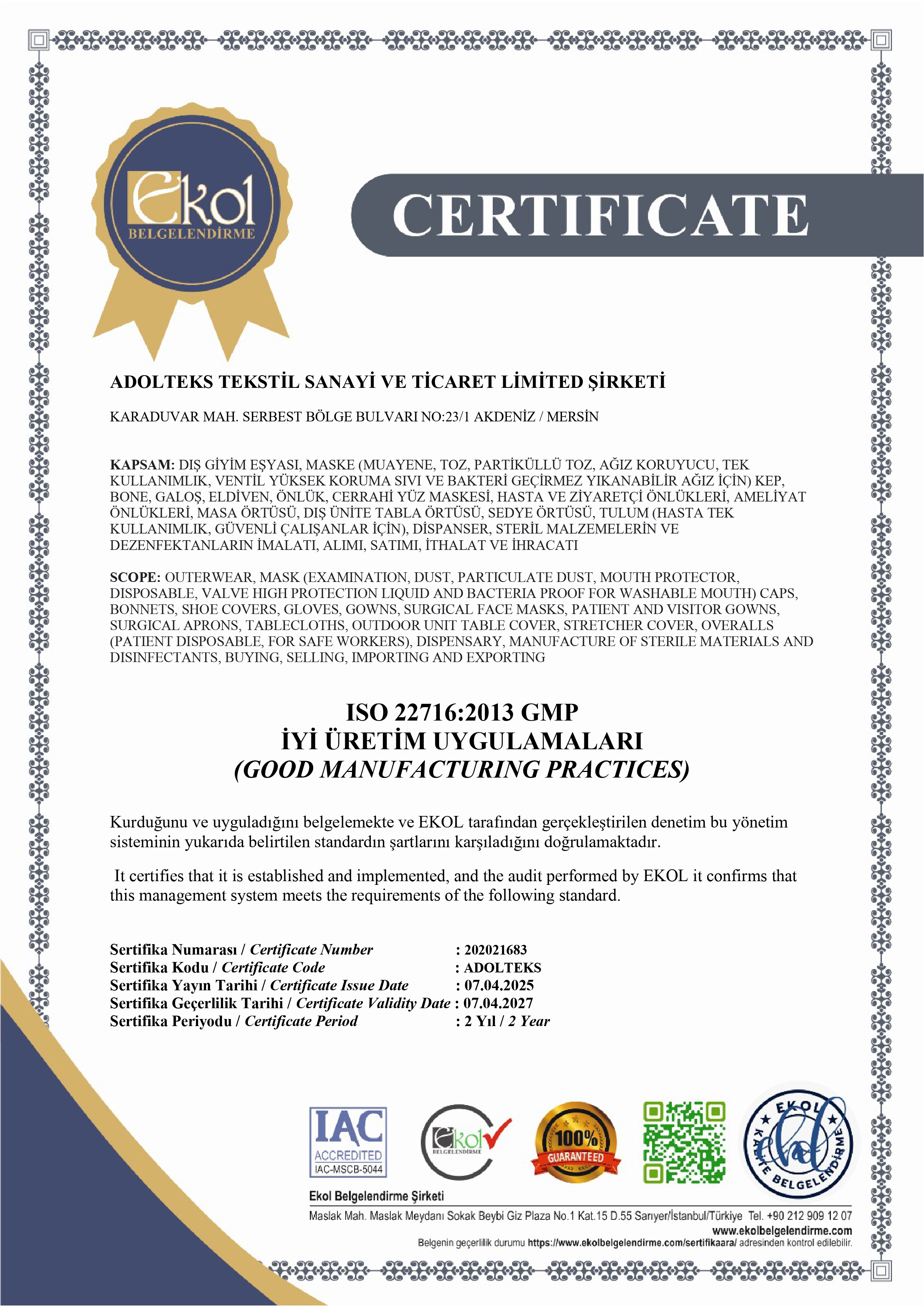 ISO 22716:2013 GMP İYİ ÜRETİM UYGULAMALARI